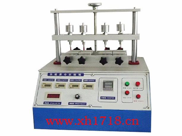 本机适用于多种开关或小型成品,作开关或按键寿命试验。具有速度可调,次数设定,并同时四个工位做测试,达到次数后数据保持。荷重采用加载砝码方式,保证测量准确度。